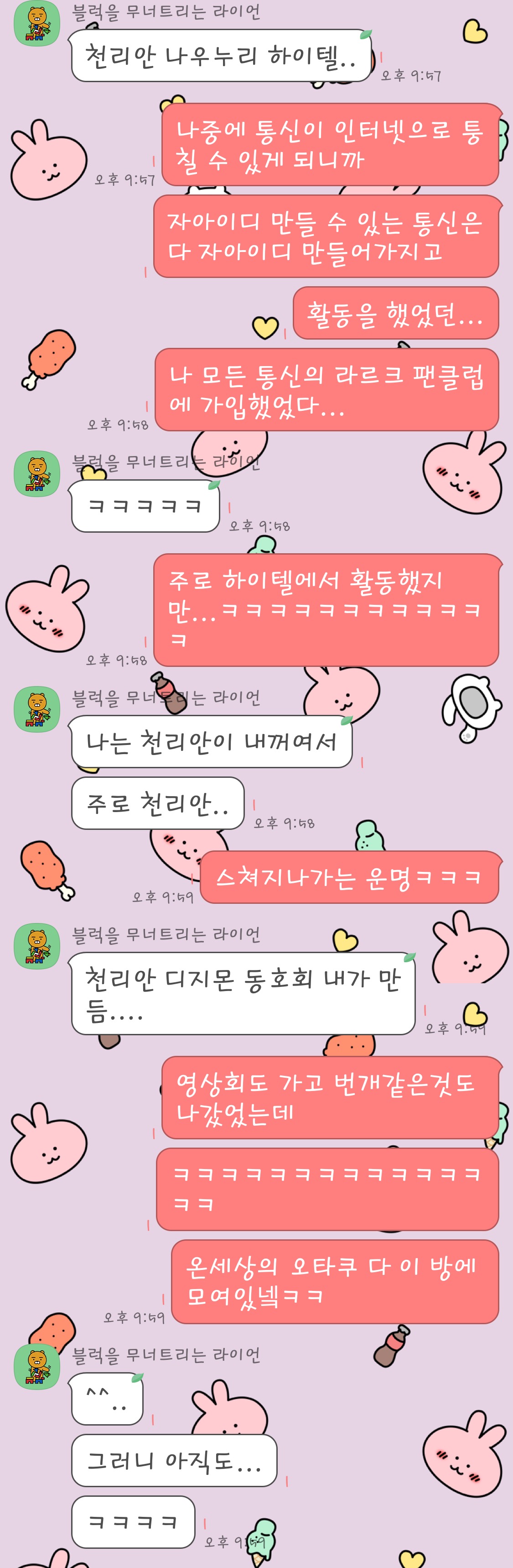 0은 천리안에서 활동했다고... 나는 하이텔! 근데 사실 나 천리안 영상회도 갔었어 친구랑 ㅋㅋㅋㅋ